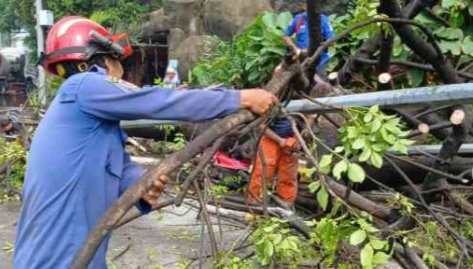 “Begitu mendapatkan laporan ada pohon tumbang dan tiang penerangan jalan umum yang roboh, kami langsung menurunkan petugas ke lokasi,” kata Andia.