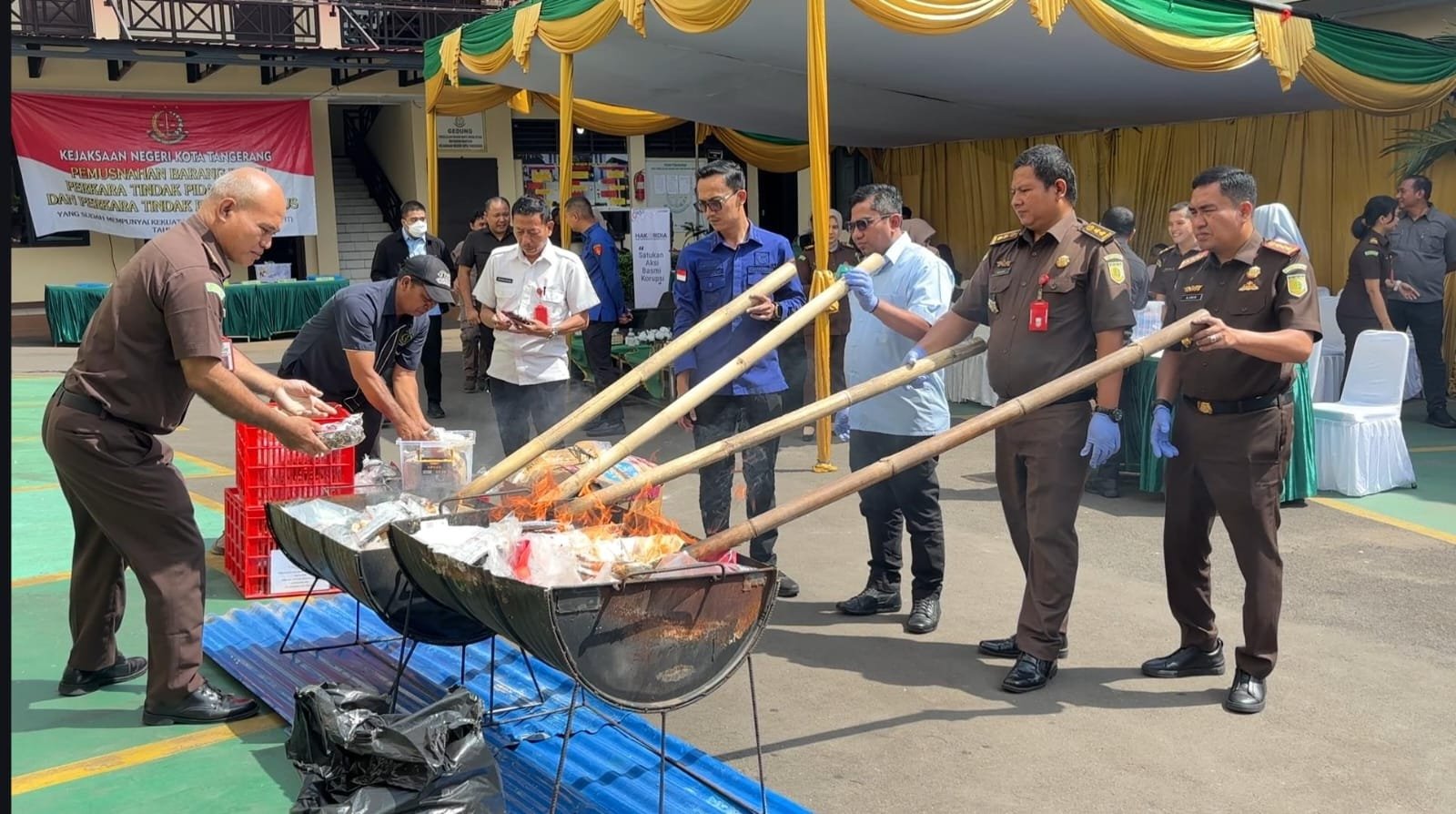 Pemusnahan berlangsung di halaman kantor Kejari Kota Tangerang, Jalan TMP Taruna Kota Tangerang, Banten. Hadir dalam kegiatan tersebut perwakilan dari Polres Metro Tangerang Kota dan Bandara Soekarno Hatta.