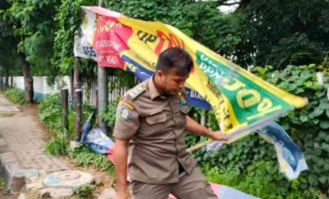 Maraknya Spanduk Liar di Kota Tangerang Ditertibkan Petugas Trantib Batuceper